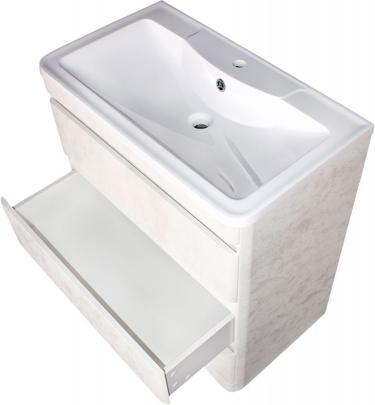 Тумба под раковину Style Line Атлантика Люкс Plus 80 СС-00002278 с тремя выдвижными ящиками. Отлично впишется в интерьер ванной комнаты в современном стиле. Ящики оснащены доводчиками для плавного закрывания.