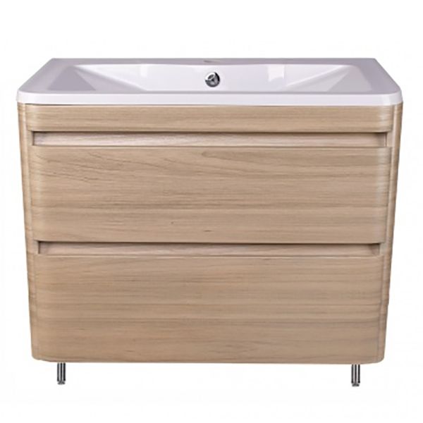 Тумба под раковину на ножках Style Line Атлантика Люкс Plus 90 СС-00002218 с двумя выдвижными ящиками. Предназначена для использования в ванных комнатах с повышенной влажностью. Ящики оснащены доводчиками для плавного закрывания.
