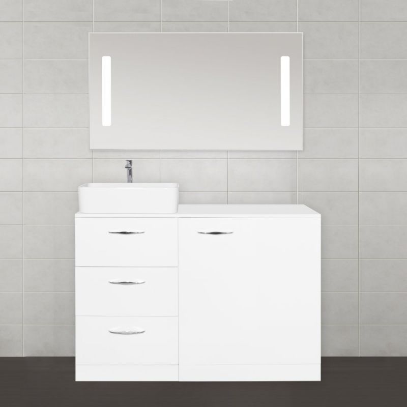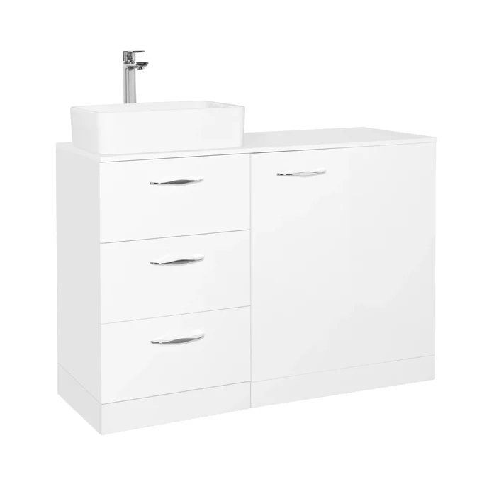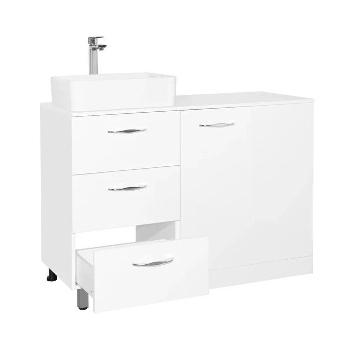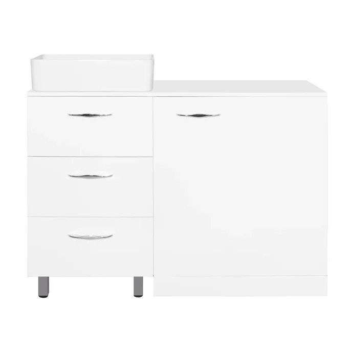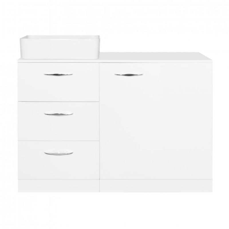 Тумба под раковину Style Line Берн Plus 120 ЛС-000010046 со столешницей под стиральную машину, с тремя выдвижными ящиками. Отлично впишется в интерьер ванной комнаты в современном стиле. Ящики оснащены доводчиками для плавного закрывания.