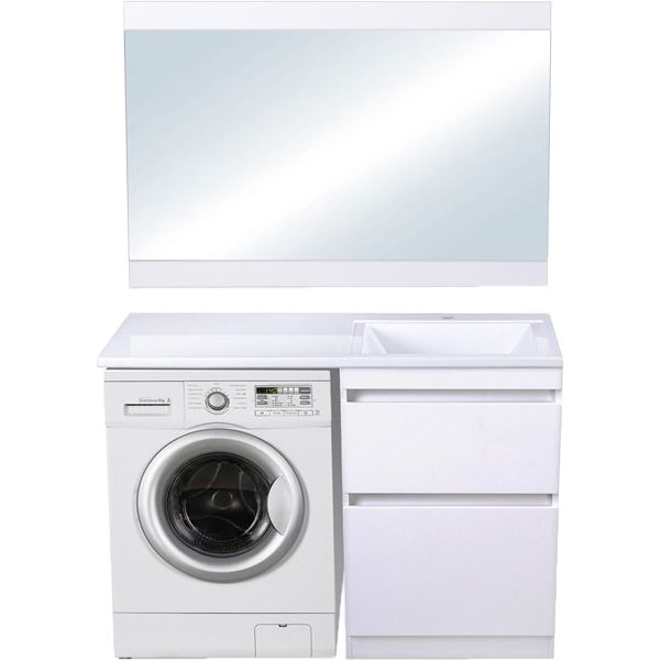 Тумба под раковину Style Line Даллас 120 Люкс Plus (СС-00000388) с 2 ящиками. Тумба коллекции Даллас выполнена в современном стиле с преобладанием прямых строгих линий в дизайне. Она сочетает в себе функциональность и обеспечит удобное хранение ванных принадлежностей. Для размещения ванных аксессуаров в тумбе предусмотрено два выдвижных ящика. Особенностью модели является возможность установки под тумбу с раковиной стиральной машины. Мебель отлично впишется в интерьер ванной комнаты в современном дизайне.