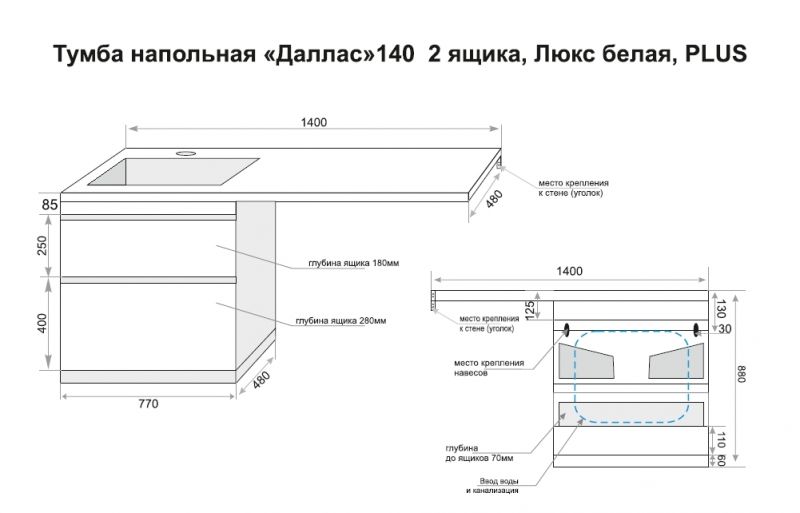 - Материал корпуса и фасада: влагостойкая МДФ Kronospan.