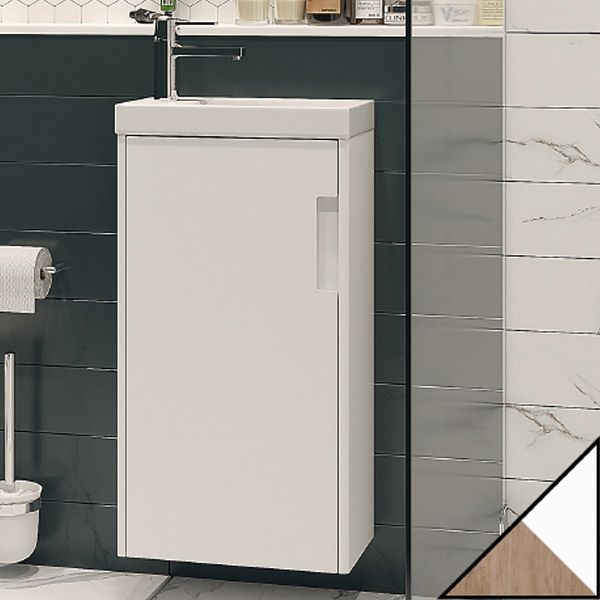 Тумба под раковину Velvex Klaufs 40.1D tpKLA.40.1D-617.216 в белом цвете с отделкой под дерево.