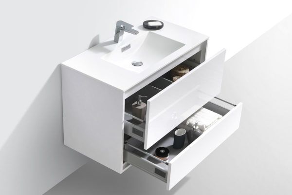 Тумба под раковину Vincea Alessia VMC-1S900LW подвесная, с двумя выкатными ящиками, выполнена в оригинальном дизайне для создания современного интерьера ванной комнаты. Изготовлена из влагостойких материалов. Оснащена доводчиками обеспечивающими плавное закрывание ящиков. Прямые ручки ящиков выполнены в лаконичном стиле и интегрированы в фасад.