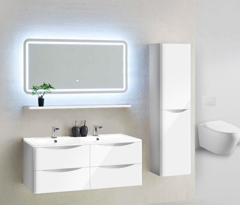Тумба под раковину Vincea Roberta VMC-1R120LW подвесная, с четырьмя выкатными ящиками и с раковиной на две чаши, выполнена в оригинальном дизайне для создания современного интерьера ванной комнаты. Изготовлена из влагостойких материалов. Оснащена доводчиками обеспечивающими плавное закрывание ящиков. Ручки ящиков выполнены в элегантном стиле и интегрированы в фасад.