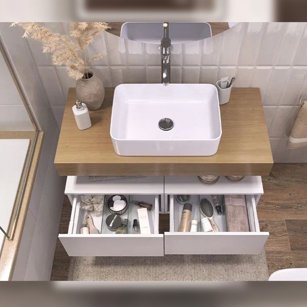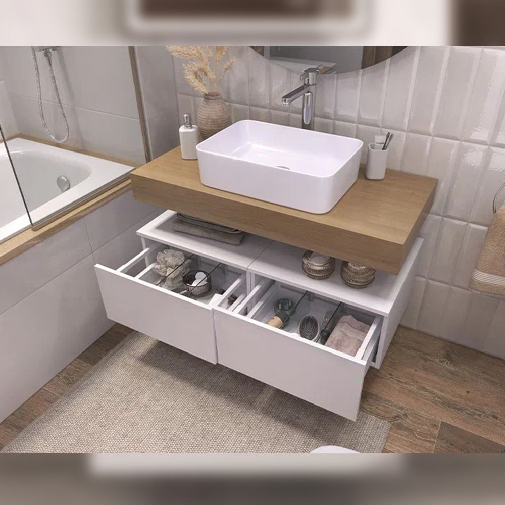 Тумба подвесная без столешницы Velvex Unit tp.UNI.50.1Y белый матовый, 50 см: 1 выдвижной ящик со стеклянными разделителями.
