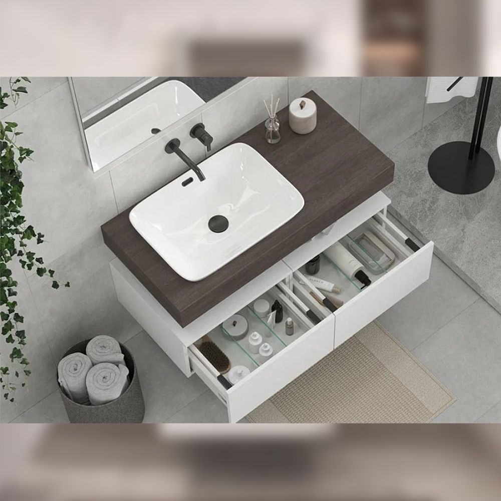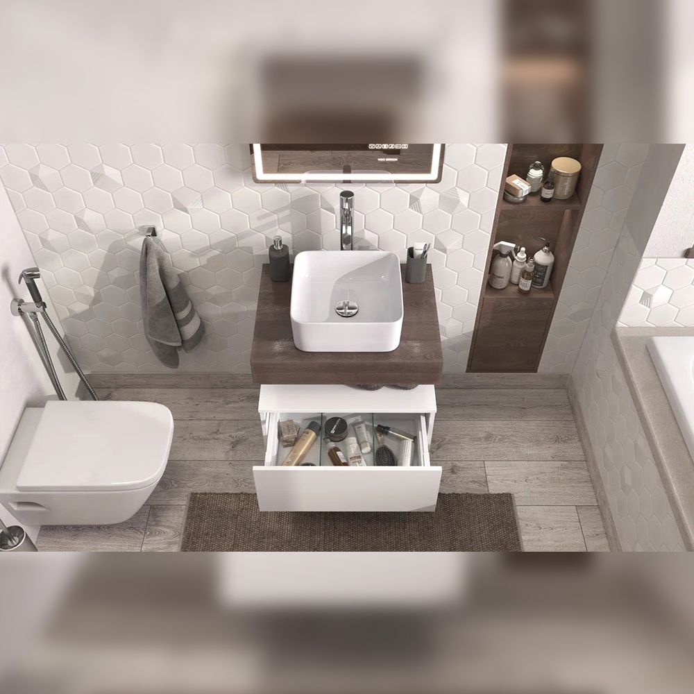 Тумба подвесная без столешницы Velvex Unit tp.UNI.60.1Y белый матовый, 60 см: 1 выдвижной ящик со стеклянными разделителями.
