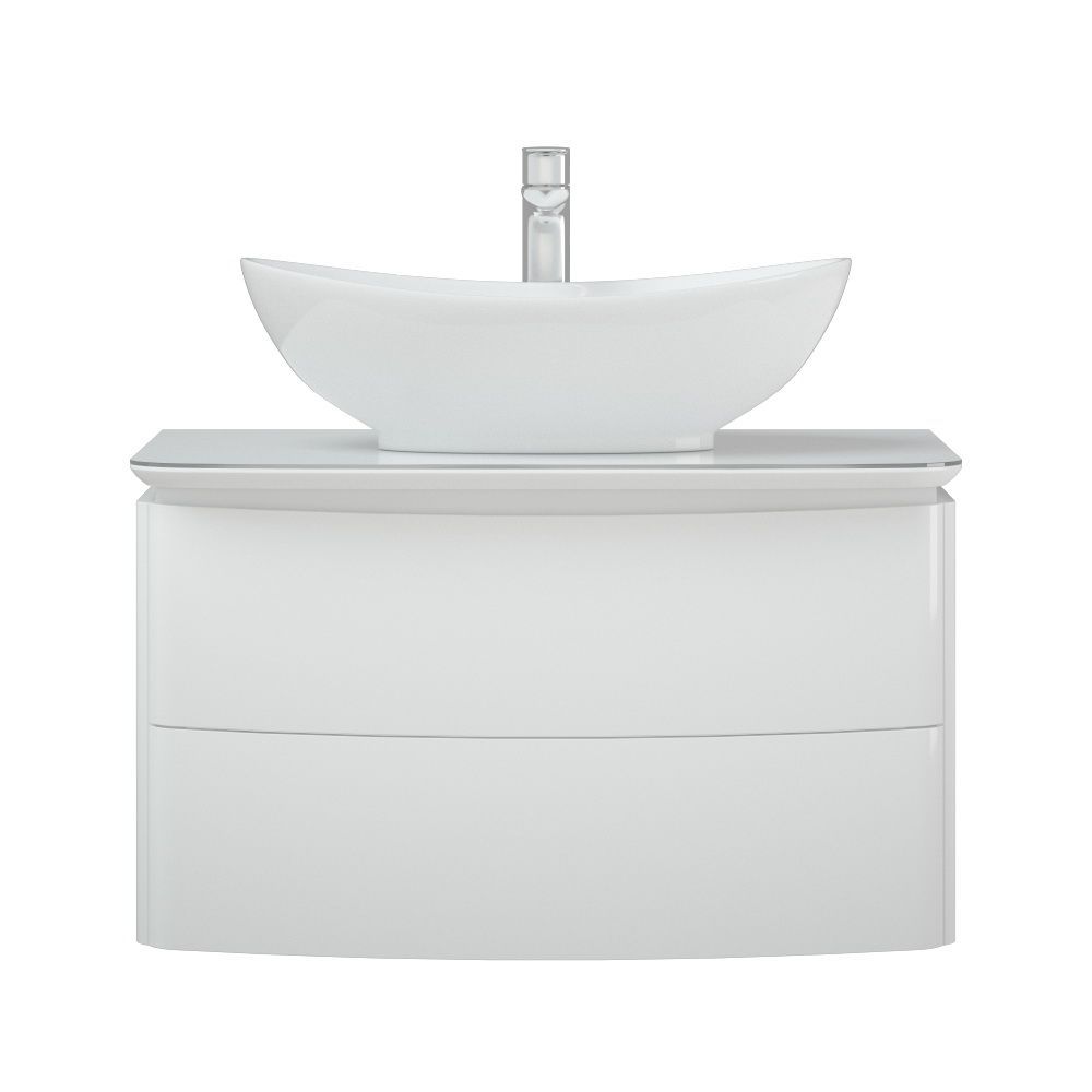 Тумба оснащена 2 выдвижными ящиками на направляющих "push to open". Для открывания нужно нажать на фасад ящика. Сверху на крышке расположена стеклянная крашенная столешница, в которой находятся вырезы для установки раковин в столешнице. Верхний ящик высотой 80 мм с выпилом под коммуникации, нижний высотой 95 мм. Коромысло, фасады, крышка - МДФ в плёнке, корпус - ЛДСП. Имеются подвесы для крепления к стене. Столешница тумбы изготовлена из высококачественного и очень прочного стекла "Лакобель". Раковина может быть выбрана на любой вкус. Классический вариант для комплектования тумбы "Огайо" - раковина "Гамма 56".