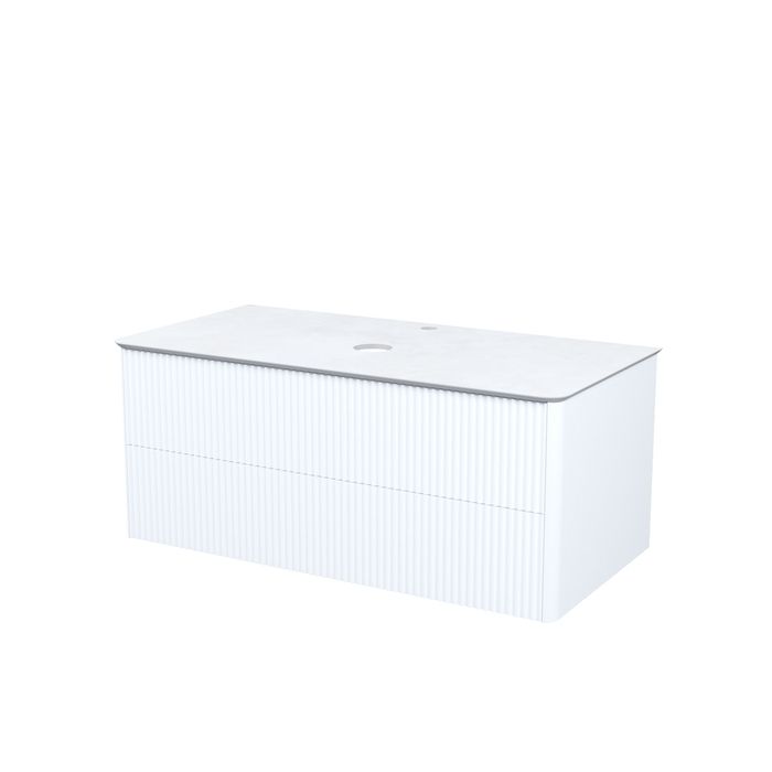 Вместительная подвесная тумба для ванной комнаты Aiger с выдвижными ящиками и столешницей из керамогранита – красивый лаконичный дизайн вне времени с трендовой вертикальной фрезеровкой.