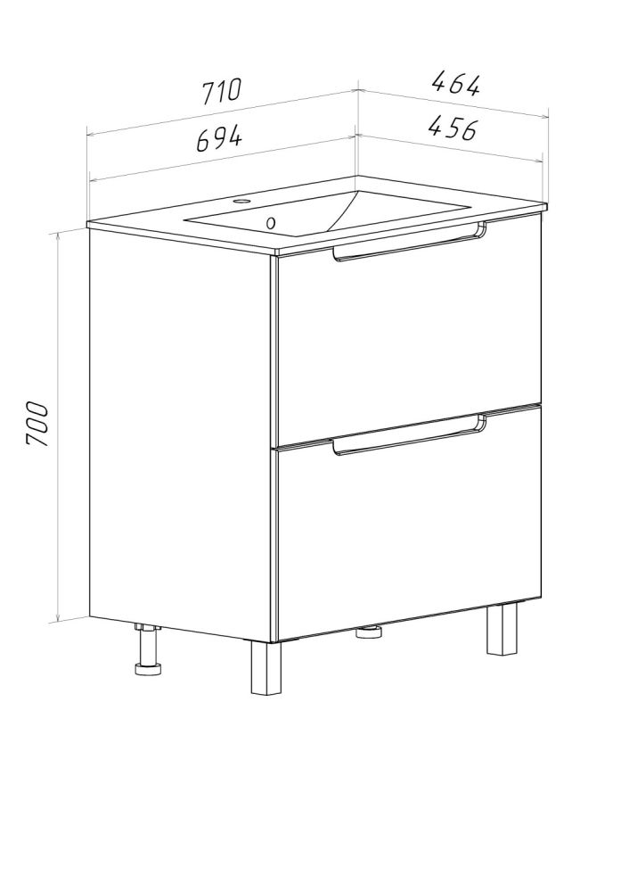 Тумба под раковину Lina (напольная) — это стильное сочетание классических и модных тенденций в оформлении ванной комнаты. Форма тумбы классическая прямоугольная, тумба в ванную оснащена двумя выдвижными ящиками на шариковых направляющих, оснащенных системой плавного закрывания. Ручки тумбы интегрированные, в сочетании с углублённой фальш панелью контрастного серого цвета выглядят стильно и необычно. В комплекте тумбы - 2 хромированные и 2 пластиковые ножки. К тумбе подходит накладная керамическая раковина Teffy 70 (709х463 мм), глубиной 26 см. Тумба подойдёт для разного стиля в помещении: к минимализму с его лаконичностью и простотой, к городскому стилю с его комфортом, функциональностью и индивидуальностью, и даже к классическому стилю с его воплощением элегантности, гармонии и утончённости. Мебель RUNO - это нестандартный подход к дизайну Вашего помещения. Нашу мебель приобретают для городской квартиры или загородного дома, чтобы наслаждаться ее стильным внешним видом и безупречной функциональностью, удобством использования каждый день. В линейке бренда представлены модели в различных расцветках, чтобы вы могли выбрать идеально подходящий вариант для интерьера в стиле лофт, скандинавском или прованс стиле.