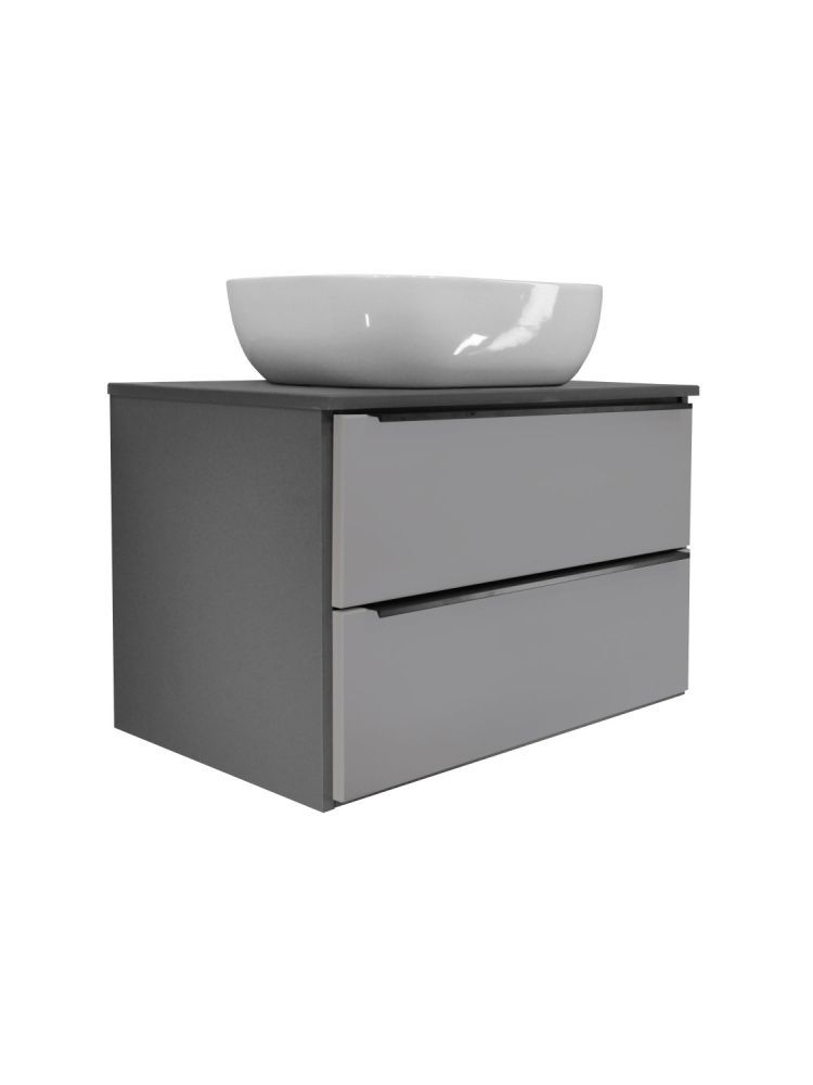 Тумба под раковину Мальта - дизайнерское решение для оформления ванной комнаты. Тумба под раковину Мальта (подвесная) - это стильное сочетание серого фасада с темно-серым корпусом. Тумба в ванную имеет два выдвижных ящика на направляющих скрытого монтажа, оснащенных системой плавного закрывания. В комплекте идут: две металлических ручки, навесы для крепления к стене. К тумбе для ванной комнаты подходят любые накладные керамические раковины бренда RUNO. Мебель для ванной RUNO - красота и практичность в мелочах!