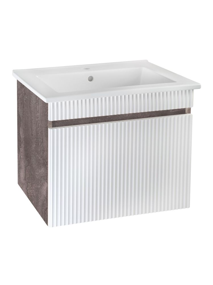 Тумба с раковиной RUNO МОДЕНА – это изысканность и утончённая роскошь в интерьере. Волнистые рифленые фасады визуально «оживляют» и «приводят в движение» всю обстановку комнаты, сохраняя при этом умиротворение и покой, превосходно сочетаются с древесной фактурой и текстурой необработанного натурального камня корпуса. В комплект мебели входят: тумба с раковиной. Тумба под раковину в ванную Модена оснащена выдвижным ящиком на шариковых направляющих. Цвет корпуса в двух цветах: текстура светлого дерева или необработанного натурального камня. Цвет фасада классический – белый глянец, идеально впишутся в любой интерьер ванной комнаты. Тумба для ванной комплектуется накладной керамической раковиной «Оскар» (660х470 мм). Раковина глубиной 19 см. Зеркало с подсветкой для ванной Руан (60х80) - стильное, современное и практичное решение для оформления интерьера ванной комнаты. Мягкая светодиодная подсветка по периметру зеркала для ванной создаст домашние уют и тепло, а также привнесет изысканность в классический или ультрасовременный интерьер. Мебель для ванной RUNO - красота и практичность в мелочах, комплект мебели Модена – лучший выбор для Вашей ванной комнаты!
