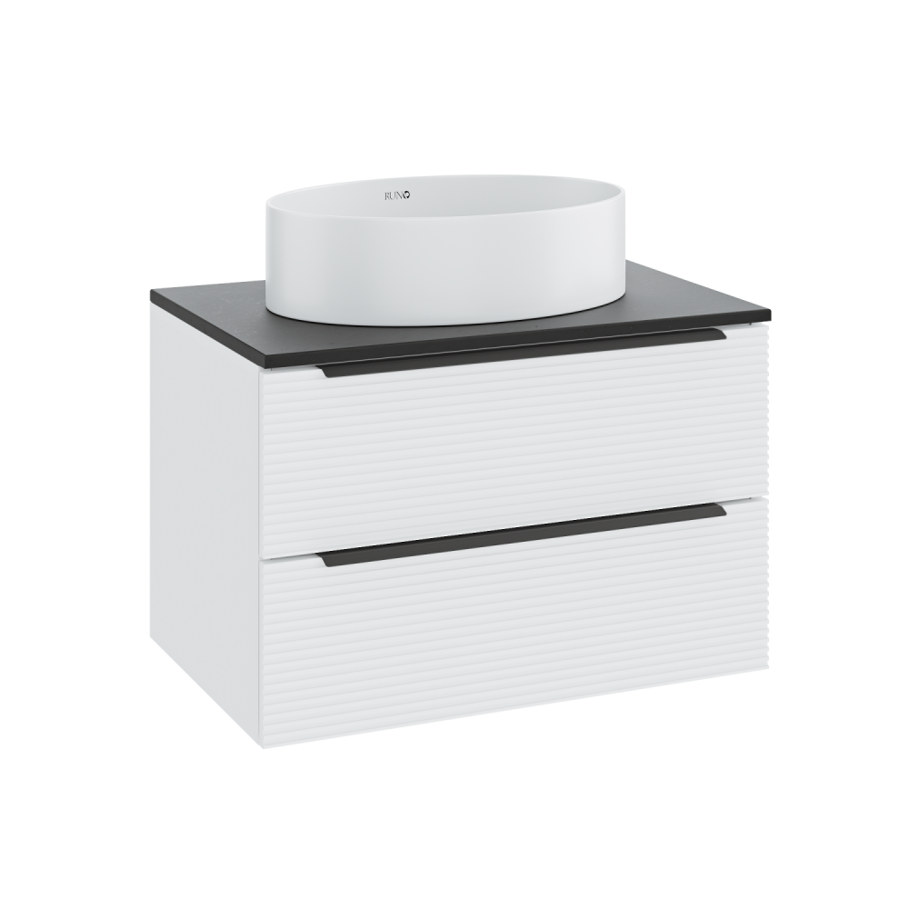 Тумба под раковину в ванную RUNO Орлеан (подвесная) – это изысканность и утончённая роскошь в интерьере. Рифленые фасады визуально «оживляют» и «приводят в движение» всю обстановку комнаты, сохраняя при этом умиротворение и покой. Цвета корпуса и фасада имеют идеальное классическое цветовое сочетание белого и чёрного цветов, которые идеально впишутся в любой интерьер ванной комнаты. Тумба в ванную оснащена двумя выдвижными ящиками на направляющих скрытого монтажа, оборудованных системой плавного закрывания. В комплекте входят: две металлические ручки, навесы для крепления к стене. К тумбе для ванной подойдут умывальники на столешницу: «OVALE 50» (50х36см) - идеальное решение для стильного интерьера ванной, создан для минималистичных интерьеров и подойдёт для санузлов в стиле лофт, минимализм и хай-тек. Строгая овальная геометрически правильная форма раковины, усиливает идею лаконичности в дизайне, устанавливается на столешницу, накладным методом. «PALLA D41» (диаметр 41см) - идеальное решение для стильного интерьера ванной, создан для минималистичных интерьеров и подойдёт для санузлов в стиле лофт, минимализм и хай-тек. Строгая круглая геометрически правильная форма раковины, усиливает идею лаконичности в дизайне, устанавливается на столешницу, накладным методом. «TRE 48» (48х37см) - идеальное решение для стильного интерьера ванной, создан для минималистичных интерьеров и подойдёт для санузлов в стиле лофт, минимализм и Хай-Тек. Строгая прямоугольная форма с округлыми углами усиливает идею лаконичности в дизайне, устанавливается на столешницу, накладным методом. И другие накладные раковины бренда RUNO.