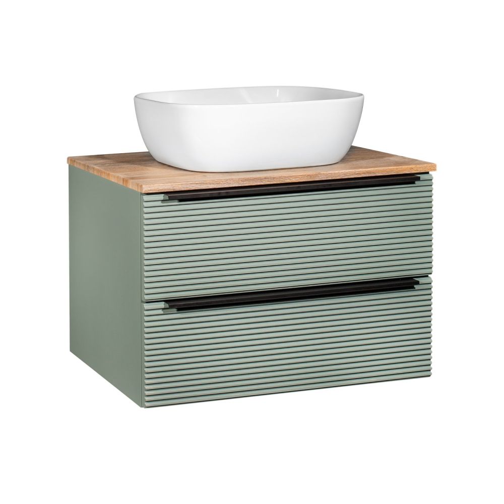 Тумба под раковину в ванную RUNO Орлеан (подвесная) – это изысканность и утончённая роскошь в интерьере. Рифленые фасады визуально «оживляют» и «приводят в движение» всю обстановку комнаты, сохраняя при этом умиротворение и покой. Цвета корпуса и фасада имеют идеальное цветовое сочетание оливкового цвета и цвета натурального дуба, которые идеально впишутся в любой интерьер ванной комнаты. Тумба в ванную оснащена двумя выдвижными ящиками на направляющих скрытого монтажа, оборудованных системой плавного закрывания. В комплекте входят: две металлические ручки, навесы для крепления к стене. К тумбе для ванной подойдут умывальники на столешницу: «OVALE 50» (50х36см) - идеальное решение для стильного интерьера ванной, создан для минималистичных интерьеров и подойдёт для санузлов в стиле лофт, минимализм и хай-тек. Строгая овальная геометрически правильная форма раковины, усиливает идею лаконичности в дизайне, устанавливается на столешницу, накладным методом. «PALLA D41» (диаметр 41см) - идеальное решение для стильного интерьера ванной, создан для минималистичных интерьеров и подойдёт для санузлов в стиле лофт, минимализм и хай-тек. Строгая круглая геометрически правильная форма раковины, усиливает идею лаконичности в дизайне, устанавливается на столешницу, накладным методом. «TRE 48» (48х37см) - идеальное решение для стильного интерьера ванной, создан для минималистичных интерьеров и подойдёт для санузлов в стиле лофт, минимализм и Хай-Тек. Строгая прямоугольная форма с округлыми углами усиливает идею лаконичности в дизайне, устанавливается на столешницу, накладным методом. И другие накладные раковины бренда RUNO.