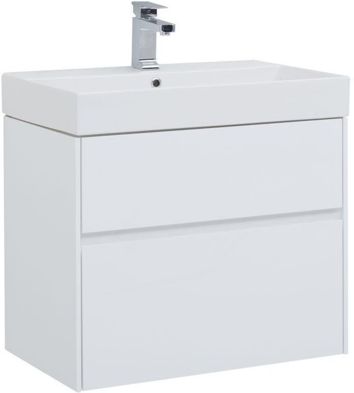 Тумба с раковиной Aquanet Бруклин 70 белого цвета предназначена для подвесной установки Изделие отвечает тенденциям минимализма Аскетизм четких линий и обтекаемых форм в ней доведен до совершенства В модели нет никаких выделяющихся деталей, и даже ручки интегрированные, когда открывание происходит за счет выступающей детали верхней или нижней части фасада, которая срезана под углом, в результате чего образуется выемка, служащая ручкой В тумбе ручка устроена таким образом у верхнего ящика в нижней части фасада, а у нижнего – в верхней Такое простое решение добавляет изысканности внешнему виду изделия Раковина из керамики с тонкими изящными бортиками идет размер в размер с тумбой, ширина которой 70 см, в результате чего все изделие выглядит как единое целое Корпус изделия выполнен из выкрашенного белой краской влагостойкого ЛДСП, фасады – из МДФ На контрасте с белизной внешних деталей стильно смотрится корпус выдвижных ящиков, выполненный в цвете «дуб сонома» Нижний ящик тумбы имеет большую зону хранения, верхний разделен на несколько отделений, которые помогут грамотно разложить все необходимое по своим местам
