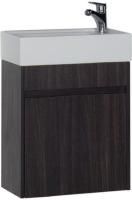 Тумба Акванет Лидс — компактная, но вместительная, ее полки станут просторной территорией для белья и полотенец. В качестве столешницы тумба комплектуется глубокой прямоугольной керамической раковиной с боковым расположением смесителя, по правую руку. Таким образом, ее можно установить в углу ванной комнаты. Своеобразием этой мебели стал цвет отделки — «эвкалипт мистери», это первое предложение от Aquanet в данном цвете. Рисунок текстуры натурального дерева всегда приятен взору, как и всё, демонстрирующее созданное живой природой. Такая поверхность успокаивает и настраивает на позитив, а это как раз то, что нужно в ванной комнате. Ламинированное покрытие соответствует представлениям о чистоте и здоровье и эффектно контрастирует с белизной ванны, кабины или душевого уголка в ванной комнате. <