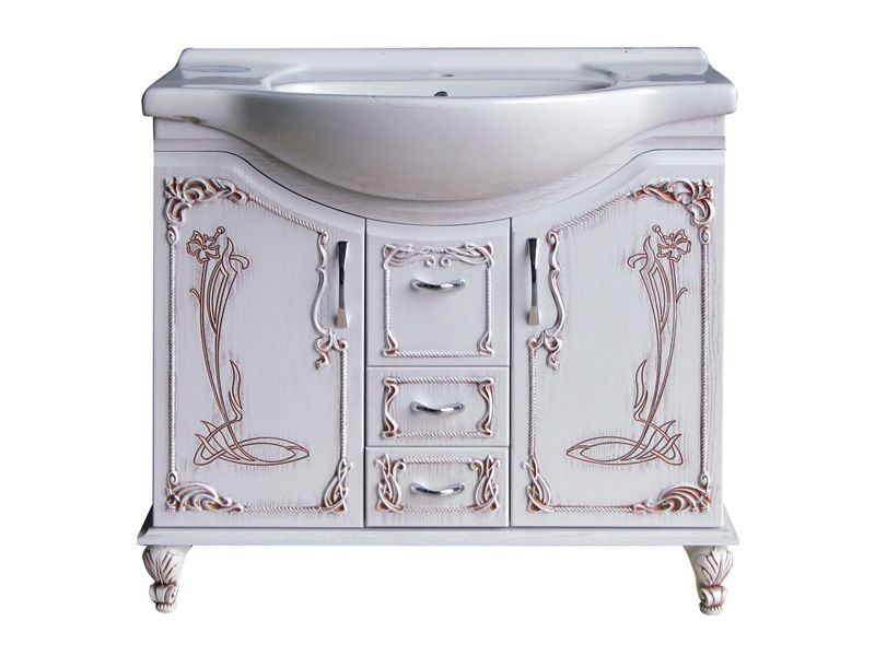 Тумба с раковиной Атолл Барселона 285 покрытие пленка ПВХ. Мебель представлена в 2-х вариантах цвета rame (белое дерево медь), lucido ( белый глянец).