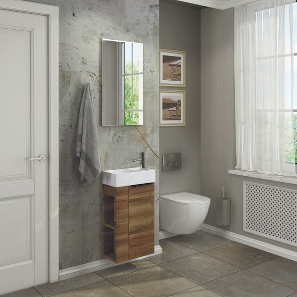 Подвесная тумба с раковиной Comforty Матэ 40 00-00000832. Декор при прикосновении дарит ощущение натуральной древесины.