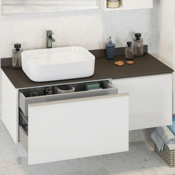 Тумба оснащена механизмами плавного и бесшумного закрытия, направляющими скрытого монтажа.