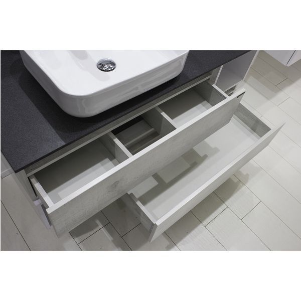 Тумба оснащена механизмами плавного и бесшумного закрытия, направляющими скрытого монтажа.