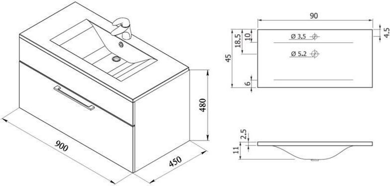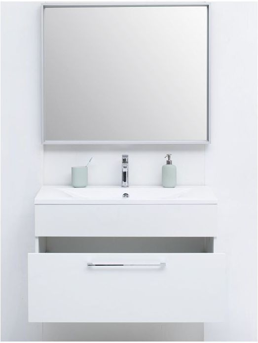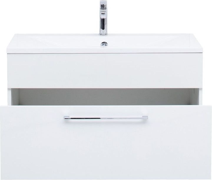 Тумба в ванную комнату De Aqua Кубика 90 представляет коллекцию с говорящим названием. Она, действительно, напоминает набор кубиков разных размеров, но выполненных в едином стиле. Коллекция включает подвесную тумбу с вместительным ящиком, куда без труда поместится много разнообразных мелочей, необходимых в ванной комнате, и с раковиной из литьевого мрамора. На ее удобных площадках, размещенных с двух сторон, можно разместить мыло и зубную пасту.