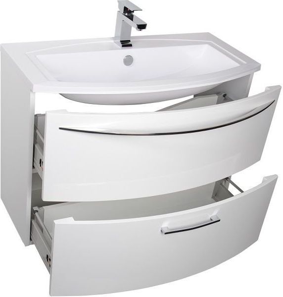 Тумба в ванную комнату De Aqua Лонг 90 привлекает своими округлыми формами и изящным дизайном. Выполненная в стиле модерн, она подкупает сдержанным и между тем стильным дизайном. Довершает картину практичная раковина из литьевого мрамора, которая, передавая все внешние прелести натурального камня, отличается легкостью, удобством и приемлемостью цен.