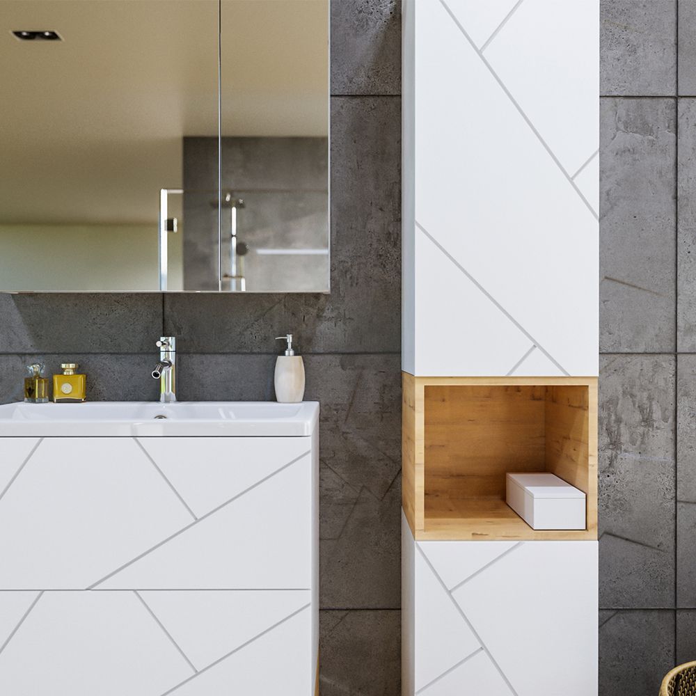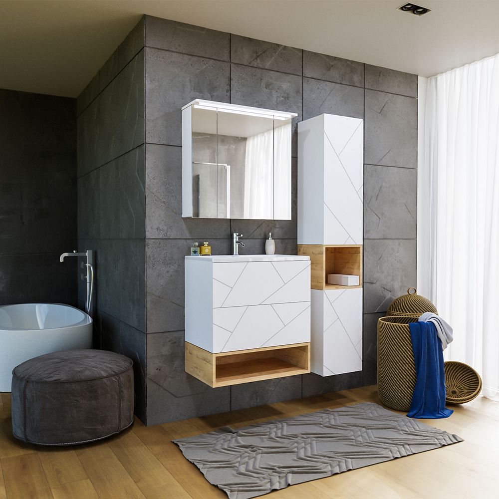 Комплект мебели Бриклаер КРИСТАЛЛ состоит из: Тумба под раковину подвесная Бриклаер КРИСТАЛЛ белый, 70 см, Раковина Cersanit Como UM-COM70/1, 70 см, Ниша для тумбы Бриклаер КРИСТАЛЛ 70 см, дуб бунратти.
