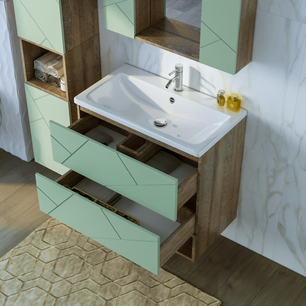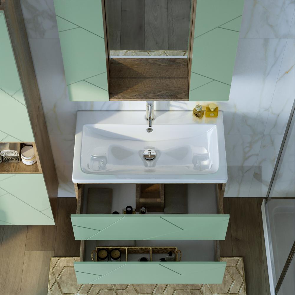 Комплект мебели Бриклаер КРИСТАЛЛ состоит из: Тумба под раковину подвесная Бриклаер КРИСТАЛЛ фисташковый, 80 см, Раковина Cersanit Como UM-COM80/1, 80 см, Ниша для тумбы Бриклаер КРИСТАЛЛ 80 см, дуб гранж песочный, .