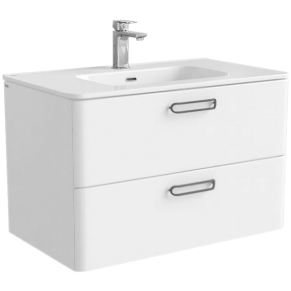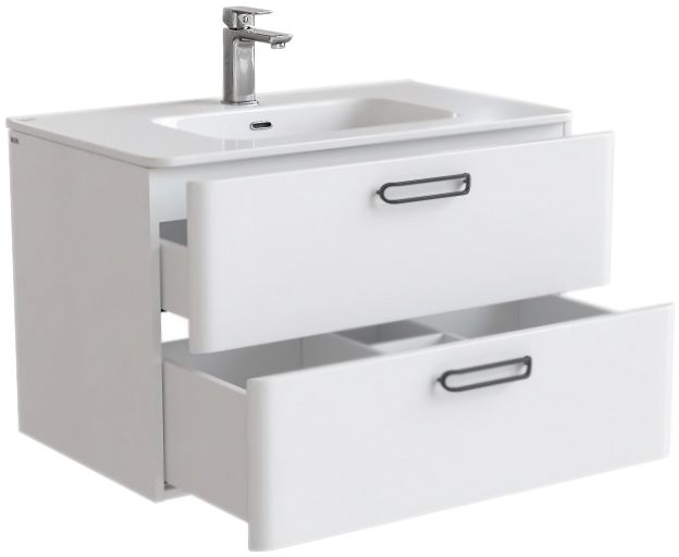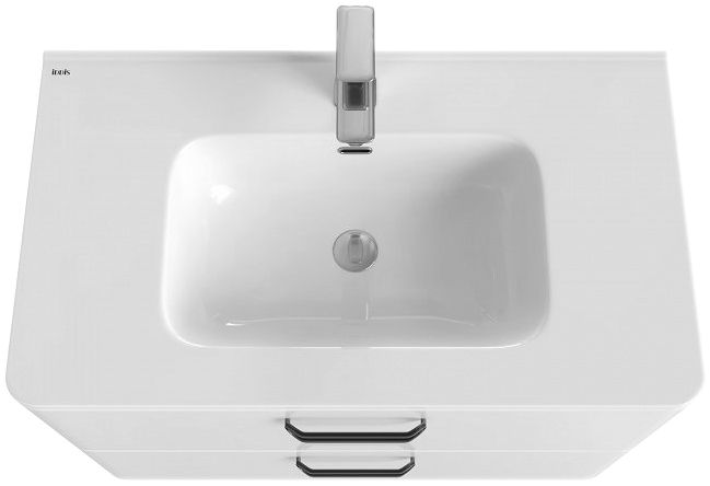 Подвесная тумба с раковиной Iddis Brick 80 BRI80W0i95K с двумя выдвижными ящиками с направляющими скрытого монтажа и механизмом плавного доведения. Предназначена для использования в ванных комнатах с повышенной влажностью. Плоская керамическая раковина повторяет закругленную форму тумбы. Надежная фурнитура рассчитана на 30 тысяч открываний. Направляющие выдерживают вес доверху наполненного ящика.