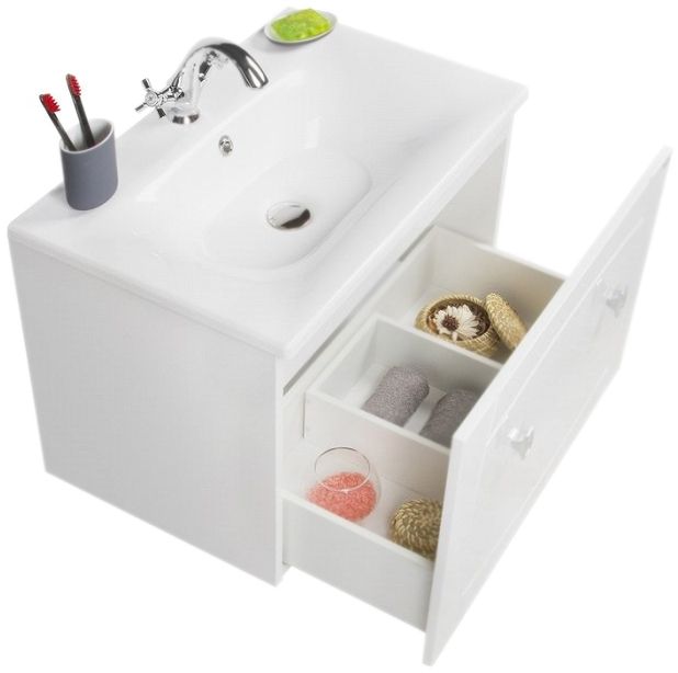 Подвесная тумба с раковиной Iddis Rise 70 RIS70W0i95K с одним выдвижным ящиком. Предназначена для использования в ванных комнатах с повышенной влажностью. Влагостойкие материалы повышенной плотности. Высококачественные немецкие скрытые направляющие с доводчиками плавно и бесшумно закрывают ящик. Раковина из искусственного камня с идеально гладкой поверхностью низкой пористости защищена от образования стойких запахов и загрязнений.