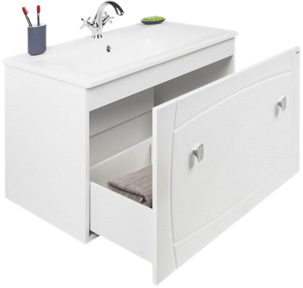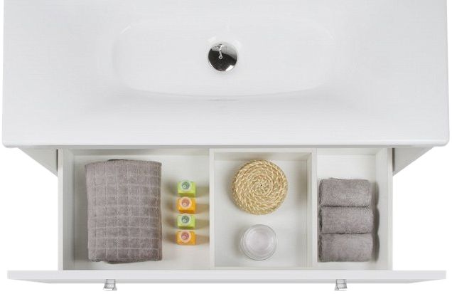 Подвесная тумба с раковиной Iddis Rise 90 RIS90W0i95K с одним выдвижным ящиком. Предназначена для использования в ванных комнатах с повышенной влажностью. Влагостойкие материалы повышенной плотности. Высококачественные немецкие скрытые направляющие с доводчиками плавно и бесшумно закрывают ящик. Раковина из искусственного камня с идеально гладкой поверхностью низкой пористости защищена от образования стойких запахов и загрязнений.