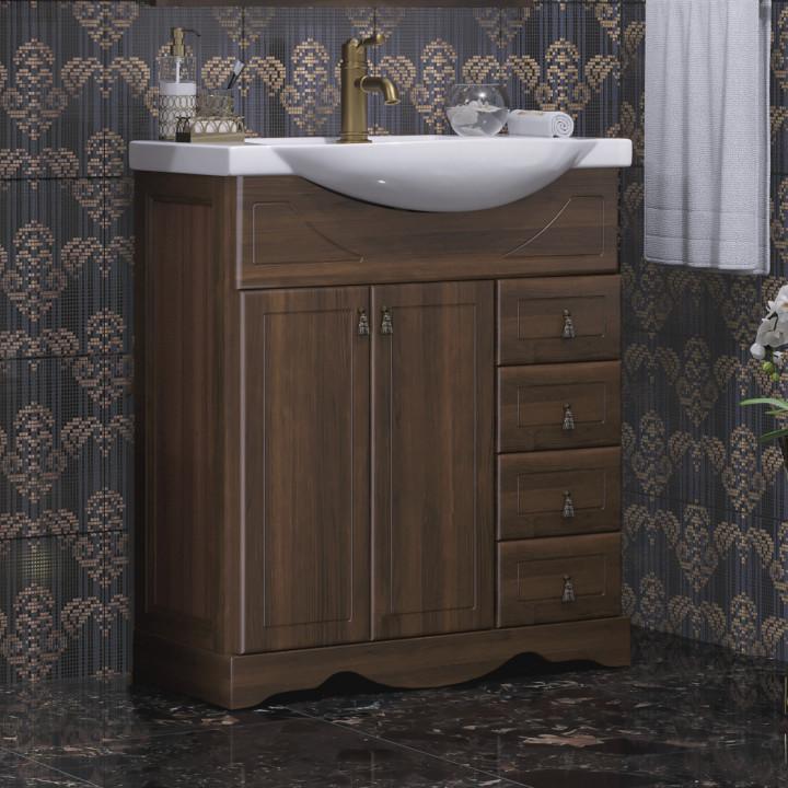 Коллекция мебели для ванной комнаты КЛИО представляет собой великолепную комбинацию из различных вариантов компактной мебели 65, 75 и 85 см. Комплект 65 см состоит из двух распашных дверец и нижнего выдвижного ящика. Комплекты 75 и 85 см состоят из двух распашных дверец (в левой части тумбы) и четырех выдвижных ящиков в правой части тумбы. Мебель из коллекции КЛИО комплектуется керамической раковиной.