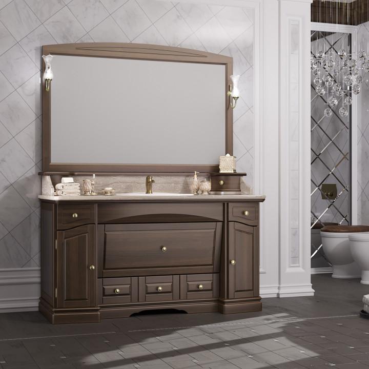 Особый шик мебели из коллекции ЛУЧИЯ придает мраморная столешница, в которую врезается накладная керамическая раковина (для размера 120 см) или две керамические раковины для размера 150 см.