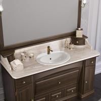 Особый шик мебели из коллекции ЛУЧИЯ придает мраморная столешница, в которую врезается накладная керамическая раковина (для размера 120 см) или две керамические раковины для размера 150 см.