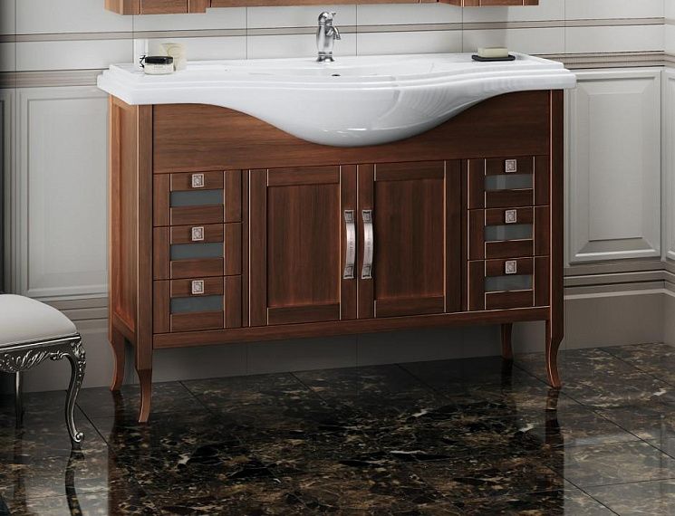 Модельный ряд коллекции МИРАЖ выполнен в двух вариантах — 100 см и 120 см, а также снабжен оригинальными дополнительными решениями для хранения: напольные комод, одностворчатый и двустворчатый пеналы, зеркала с дополнительными навесными шкафами.