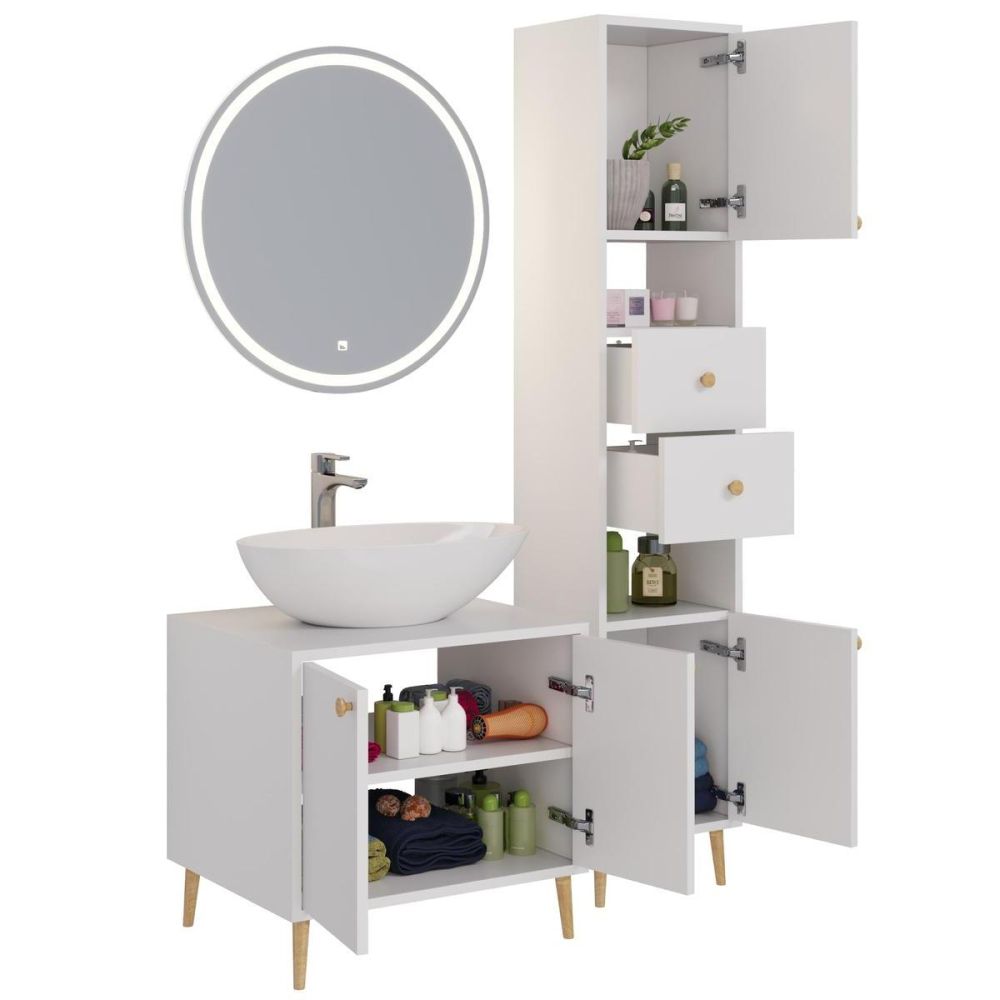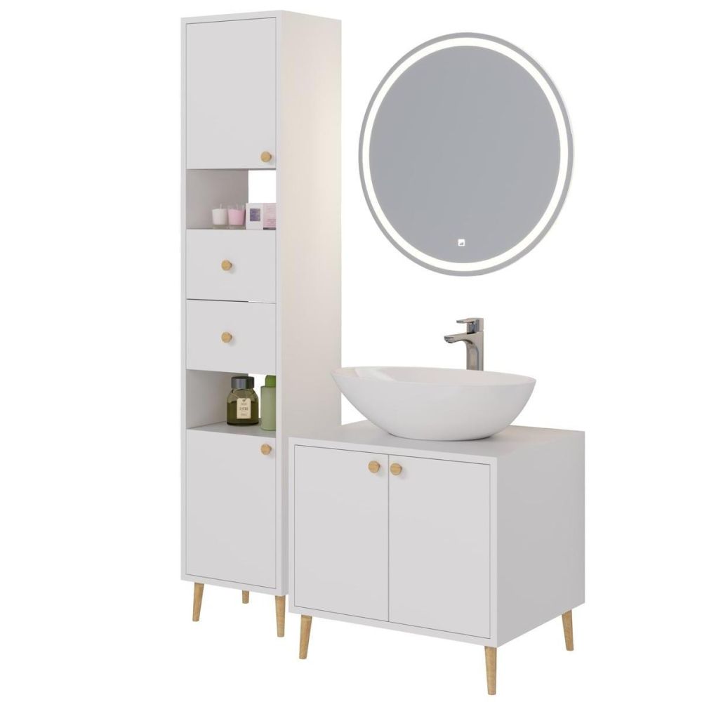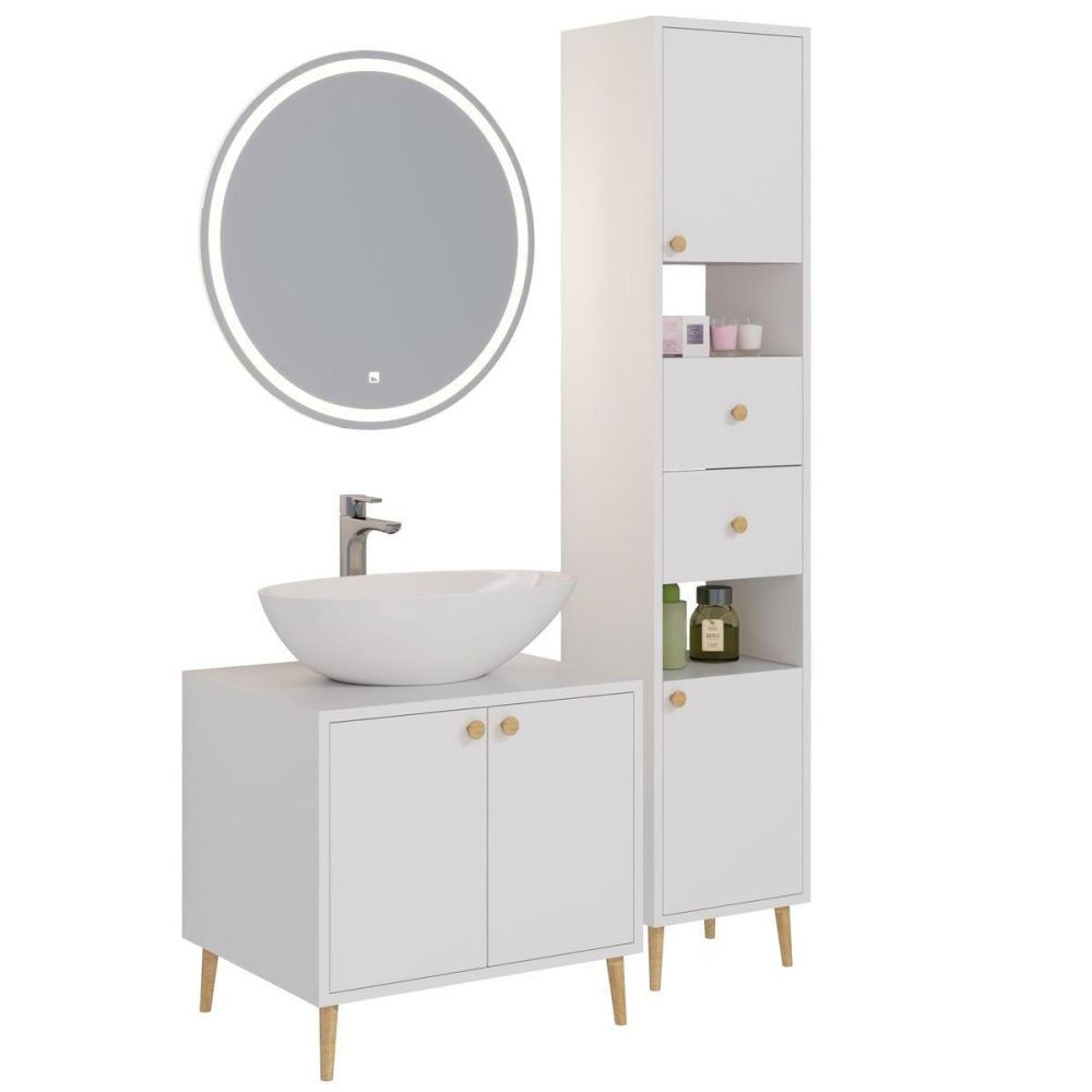 Тумба под раковину напольная Dreja Luno 60 см, белый. Фурнитура: Boyard. Компоновка: 2 дверцы. Монтаж: напольный. Раковина арт.: 641266 в комплекте.