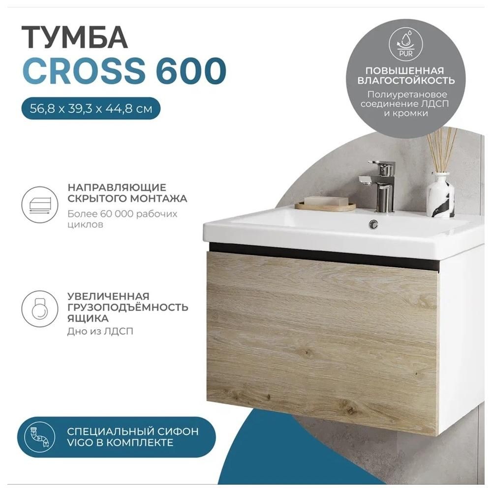 Тумба с раковиной напольная VIGO Cross 403-com, 60 см. Ракавина в комплекте.
