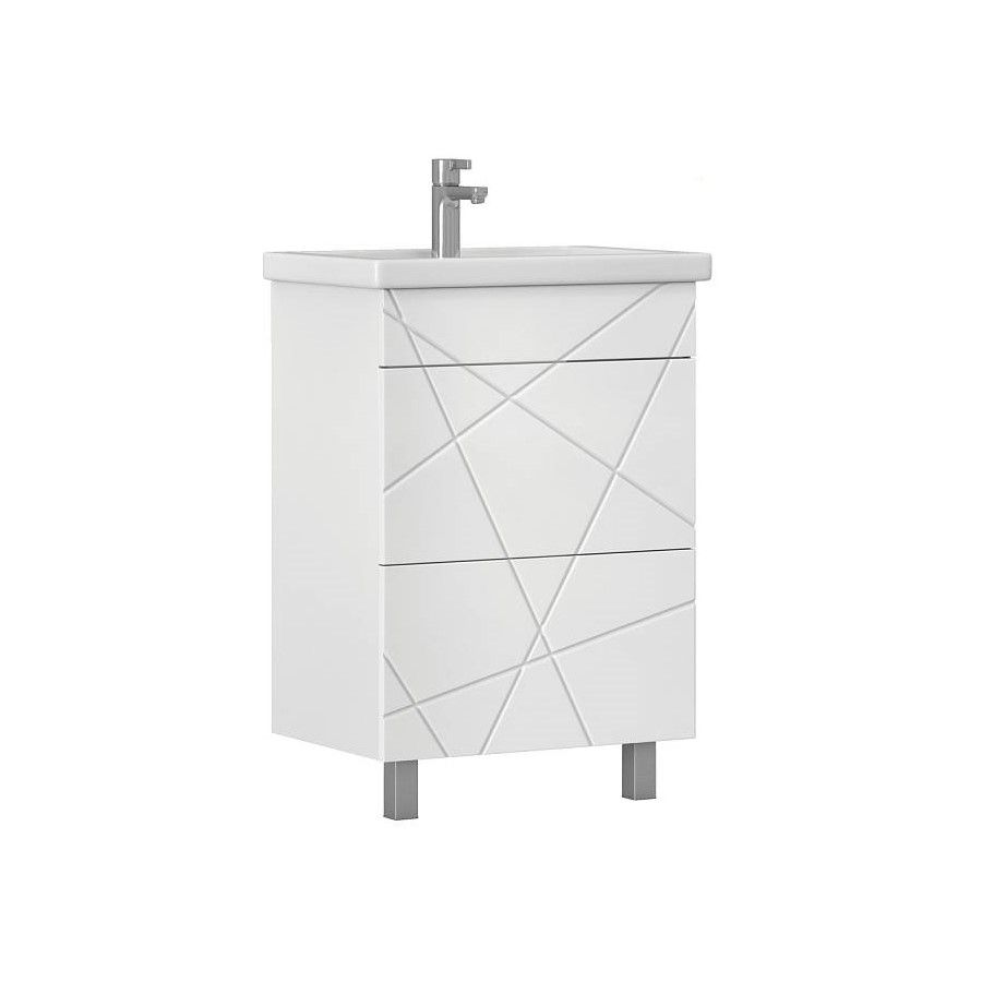 Тумба с раковиной напольная VIGO Geometry tn.GEO.COM.60.2Y, 60 см. Раковина в комплекте. 2 ящика; опоры квадратные регулируемые. Специальный сифон Vigo в комплекте. Материл корпуса тумбы: влагостойкая ЛДСП Материал фасадов: МДФ Покрытие: пленка ПВХ Ящики: направляющие полного выдвижения, механизм push-to-open.