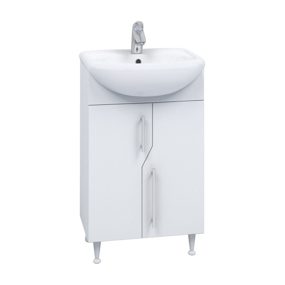 Тумба с раковиной напольная VIGO Grand tn.GRA.UYU.45.2D, 45 см. Раковина в комплекте. 2 дверцы; 1 полка ЛДСП; опоры конус регулируемые. Материал корпуса: влагостойкая ЛДСП Материал фасадов: ЛМДФ Покрытие: пленка ПВХ..