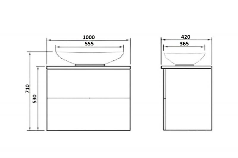 - Размеры тумбы с раковиной (ШхГхВ): 100x42x53 см.