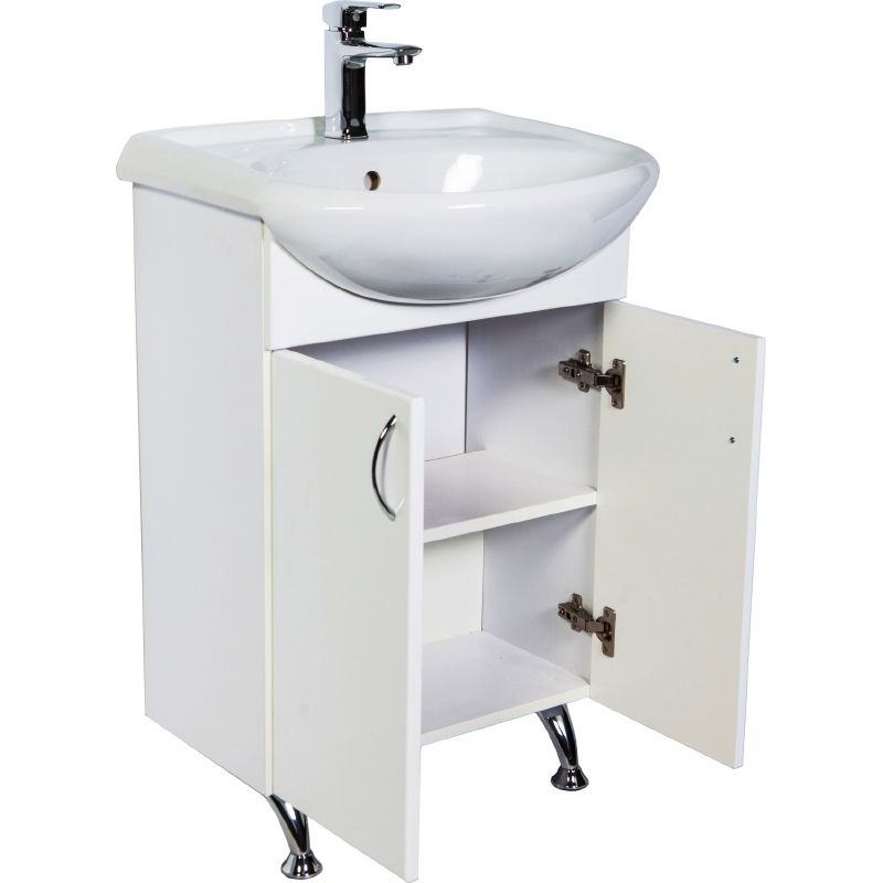 Тумба с раковиной Orange Роса Ro-45TUW имеет минималистичный дизайн и продуманную эргономику, который гармонично впишется в интерьер любой ванной комнаты. Тумба имеет две распашные дверцы, внутри расположена полочка.