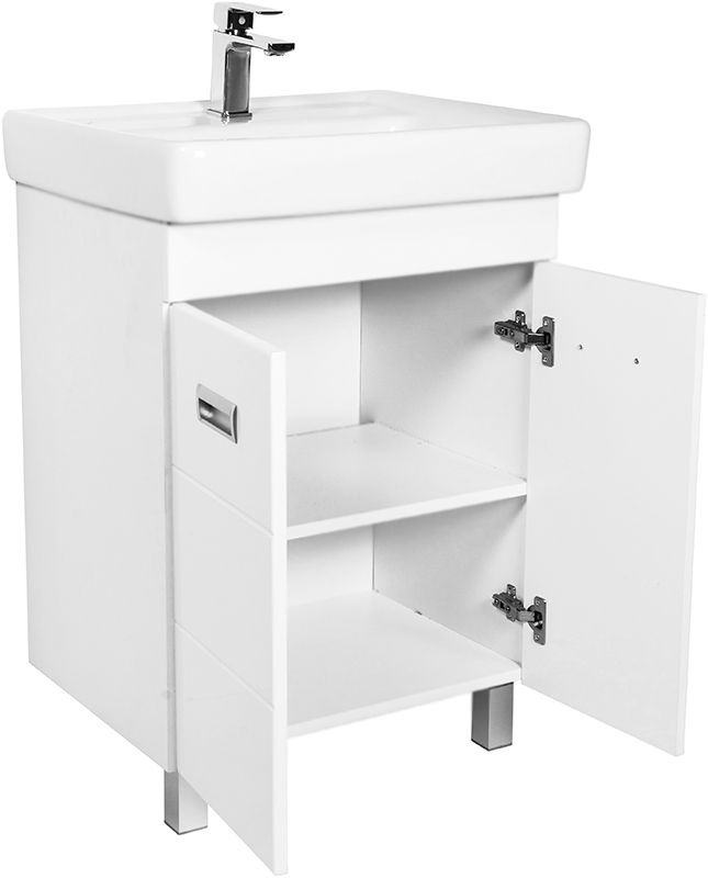 Тумба с раковиной на ножках Orange Таис 60 Ta-60TUW+RA с двумя распашными дверцами и полкой. Предназначена для использования в ванных комнатах с повышенной влажностью. Стильные прямоугольные ручки идеально сочетаются со стремительными линиями раковины. Высокое качество сборки, материалов и фурнитуры.