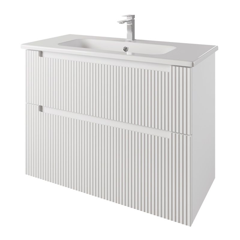 Тумба с раковиной EUPHORIA, 100 см, подвесная/напольная. Компоновка: 2 ящика. Цвет: матовый белый. Под умывальник Euphoria