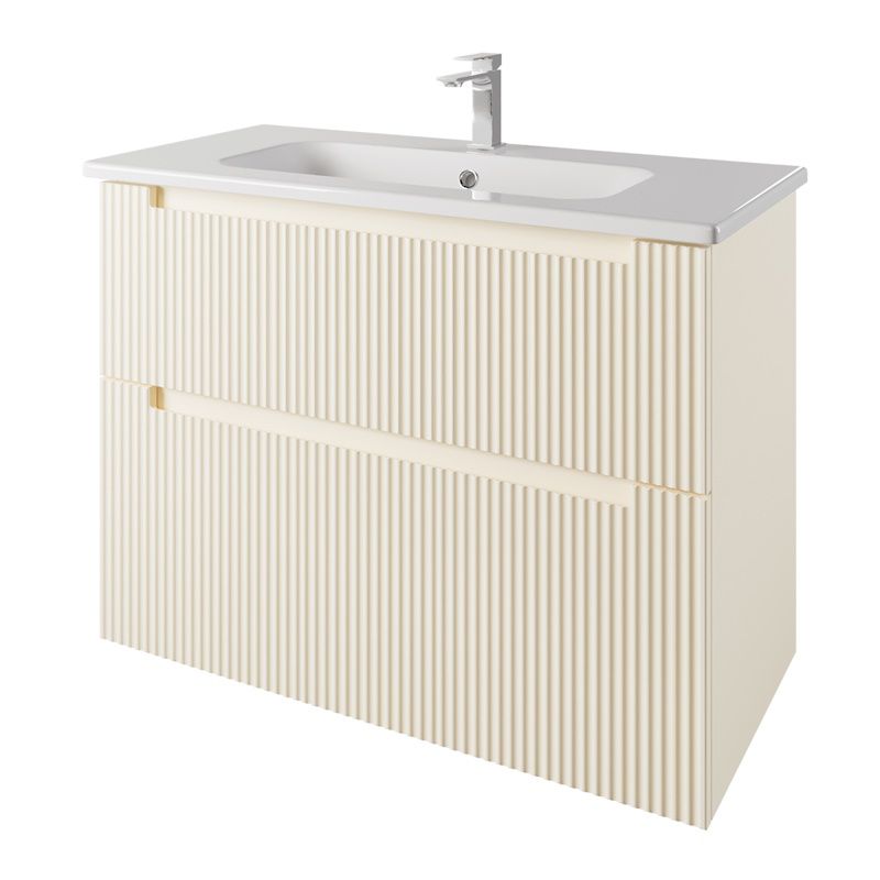 Тумба с раковиной EUPHORIA, 100 см, подвесная/напольная. Компоновка: 2 ящика. Цвет: матовый бежевый. Под умывальник Euphoria