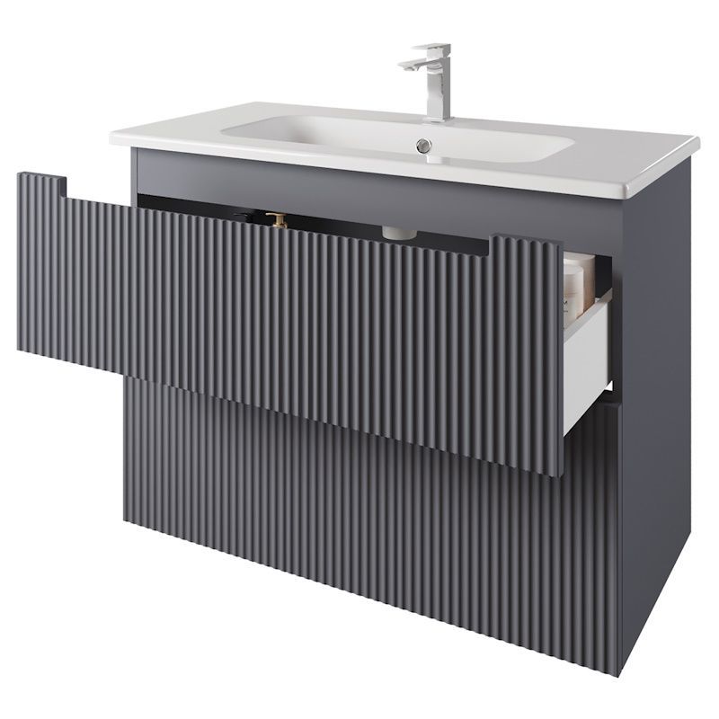 Тумба с раковиной EUPHORIA, 100 см, подвесная/напольная. Компоновка: 2 ящика. Цвет: серый базальт. Под умывальник Euphoria