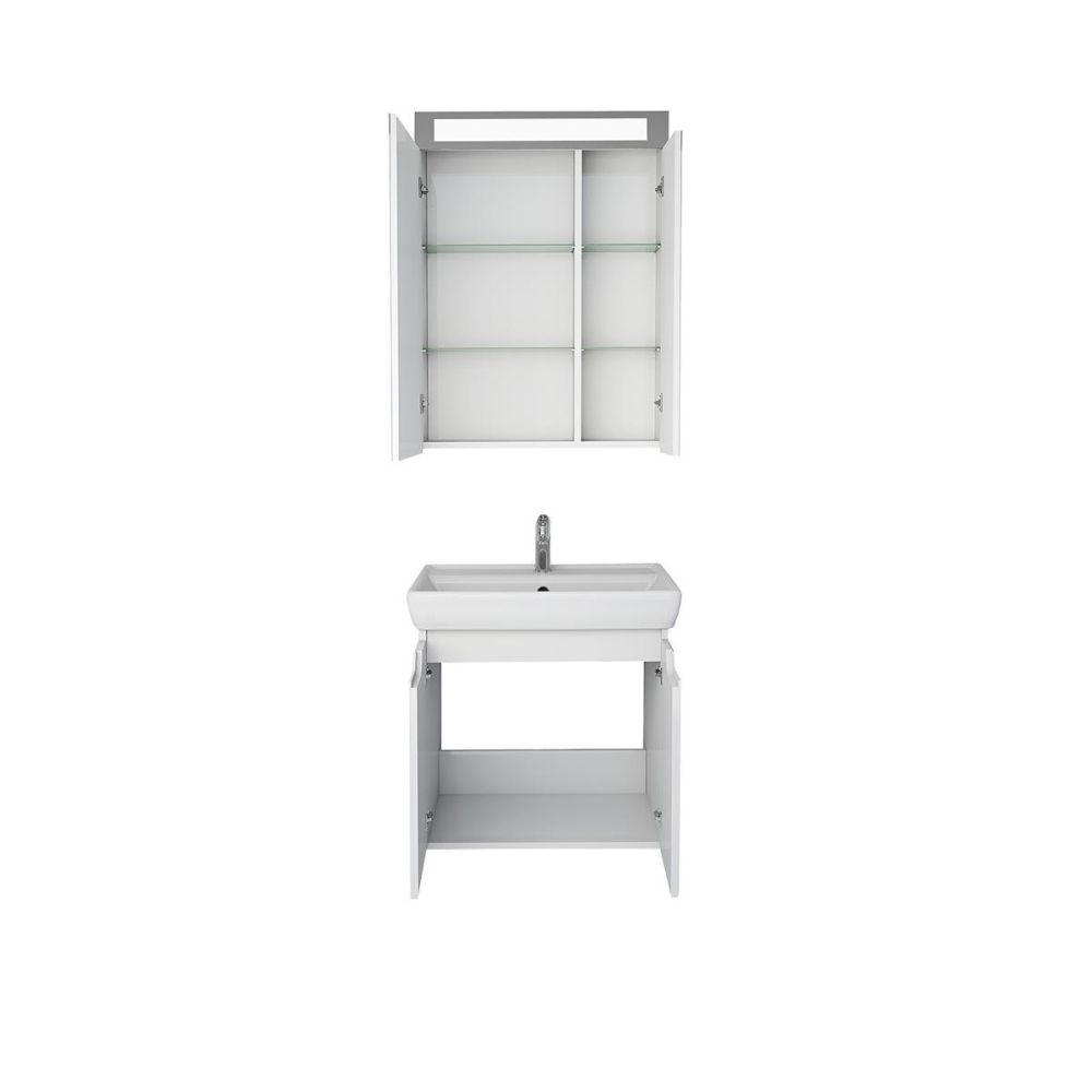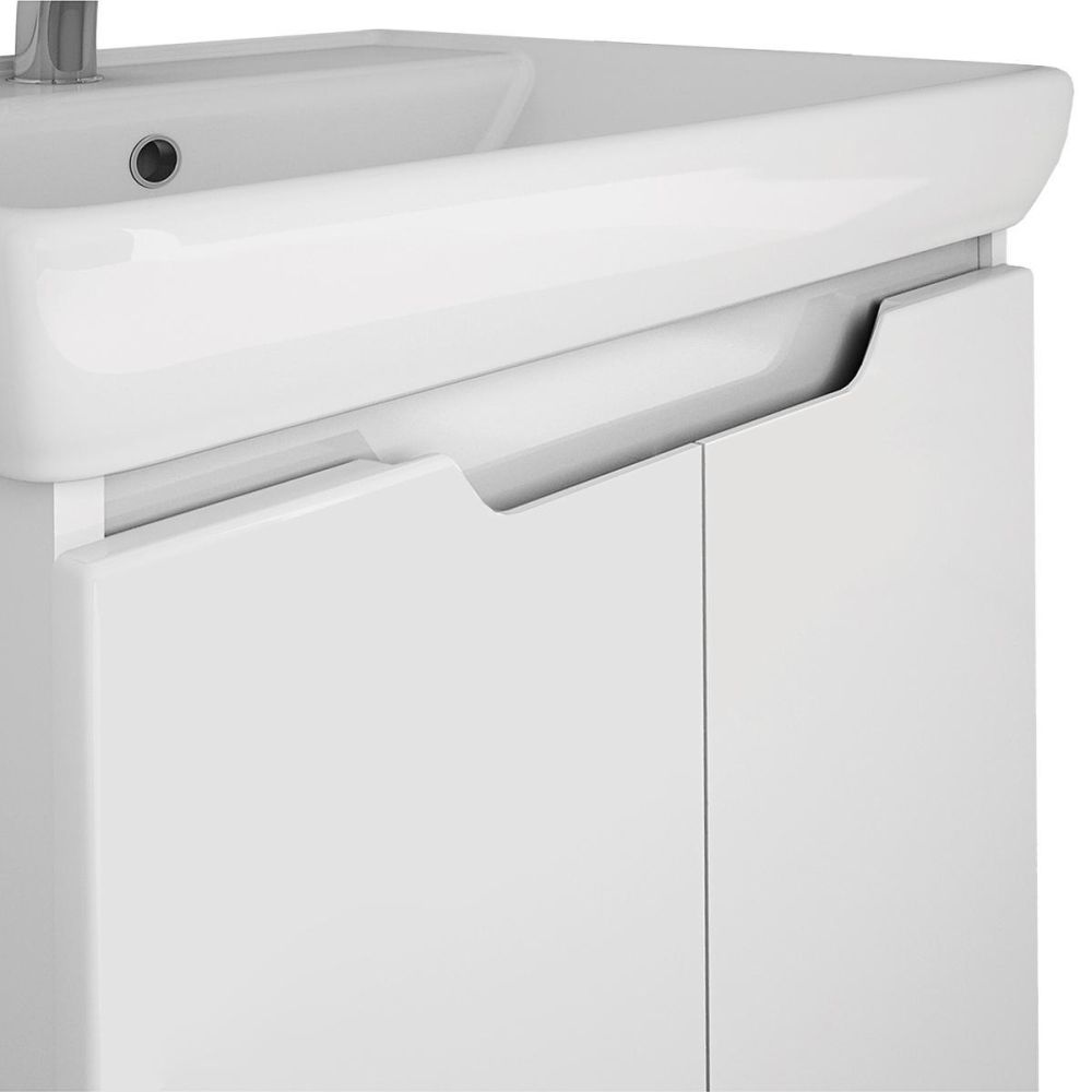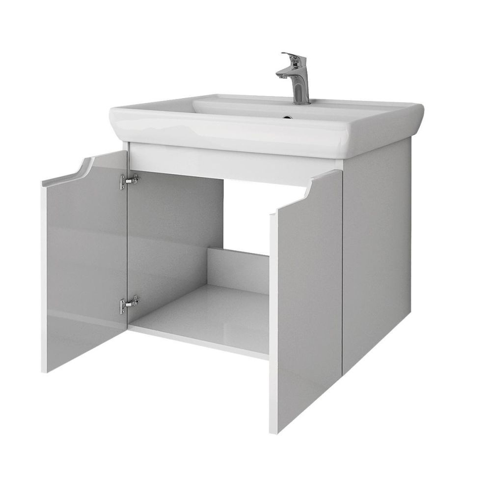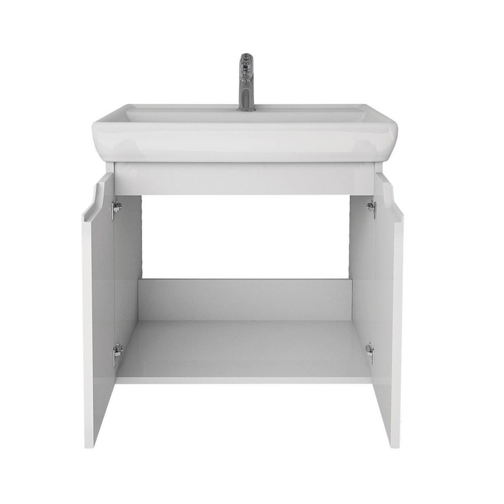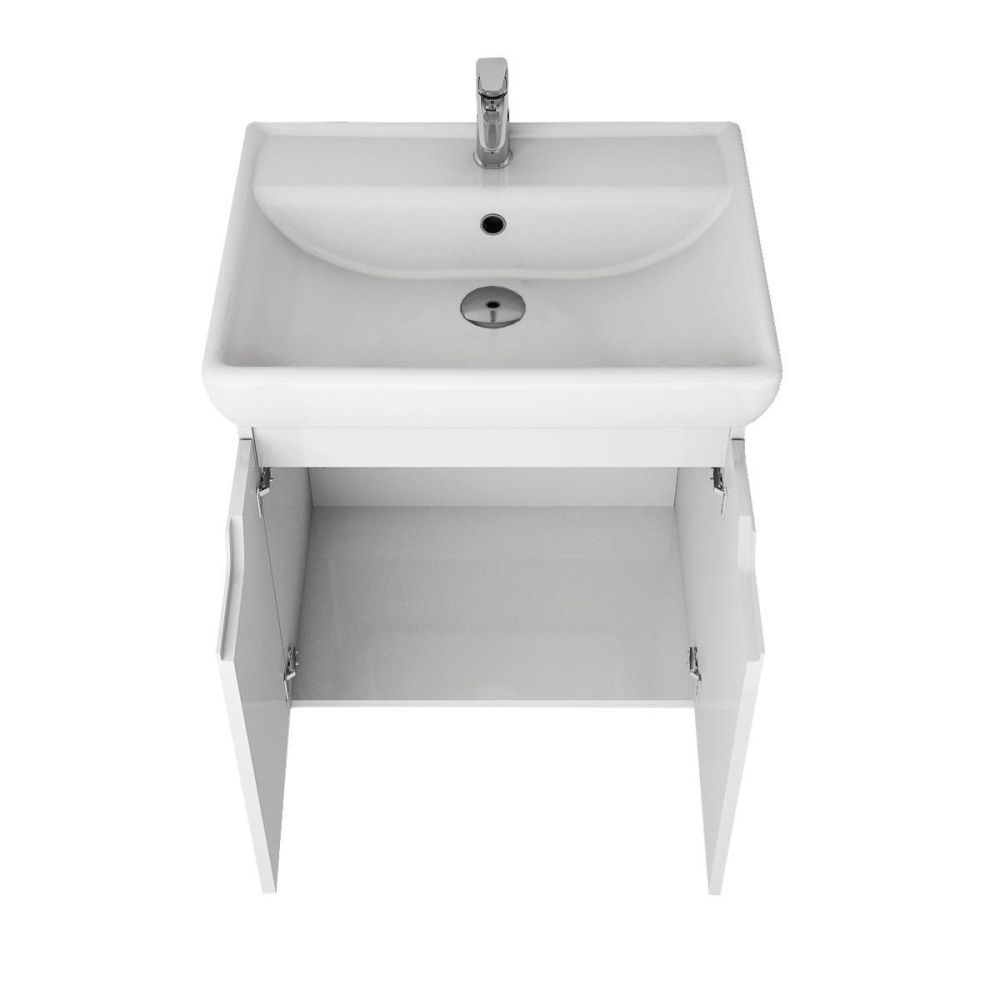 Тумба под раковину подвесная Dreja Q(D) 60 см, белый. Фурнитура: Hettich. Компоновка: 2 дверцы, 1 полка. Монтаж: подвесной. Раковина арт.: 191638 в комплекте.
