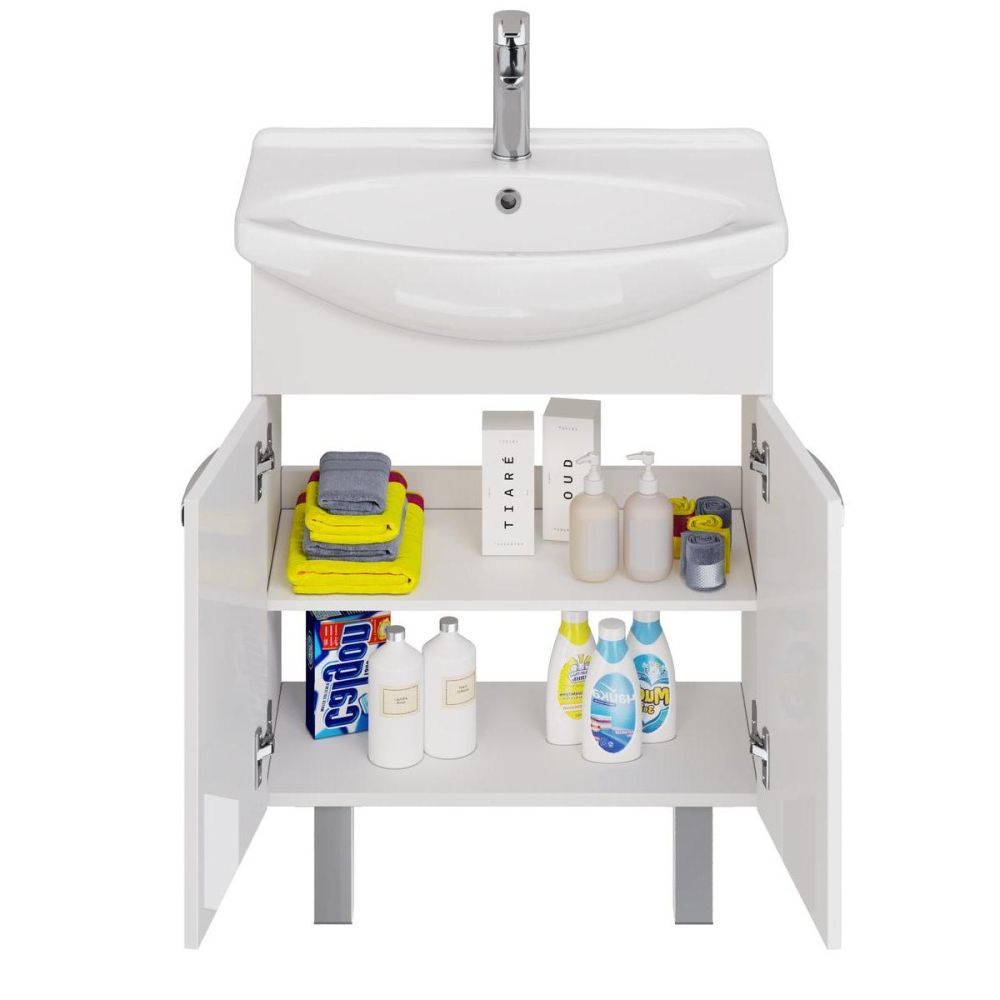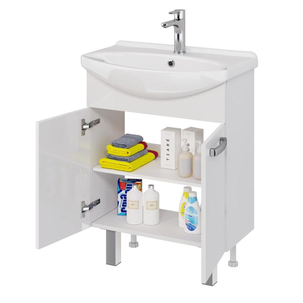 Тумба под раковину подвесная/напольная Dreja Alda D 65 см, белый. Фурнитура: Hettich. Компоновка: 2 дверцы. Монтаж: подвесной/напольный. Возможен напольный монтаж - необходимо отдельно приобрести ножки Dreja арт.: 99.9811. Раковина арт.: 192529 в комплекте.