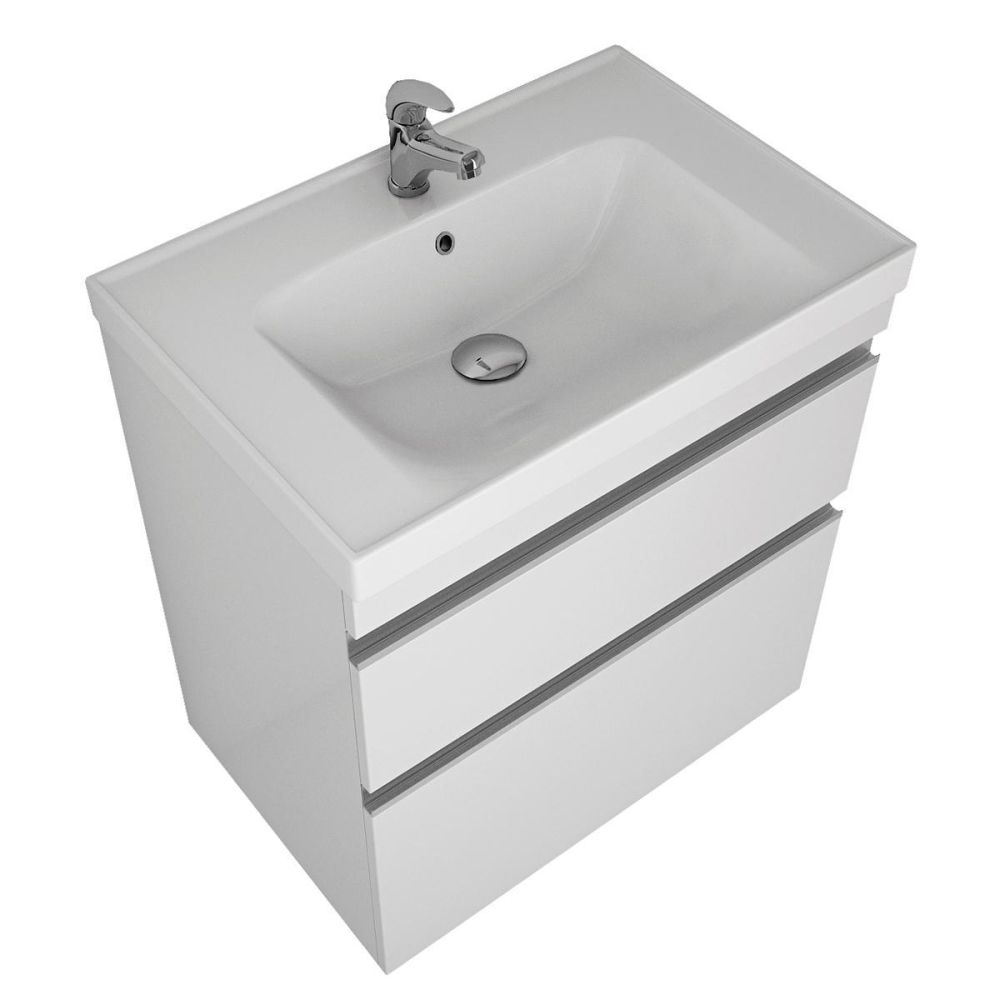 Тумба под раковину подвесная/напольная Dreja Grace Plus 60 см, белый. Фурнитура: Hettich. Компоновка: 2 ящика. Дополнительные функции: встроенный органайзер в верхнем ящике. Монтаж: подвесной/напольный. Для монтажа необходимо закрепить тумбу к стене и использовать входящие в комплект поставки опоры. Раковина арт.: 641587 в комплекте.