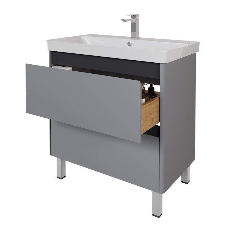 Тумба с раковиной LUXURY PLUS, 80 см, подвесная/напольная. Компоновка: 2 ящика, с опорами. Цвет: серый базальт. Под умывальник Luxury.
