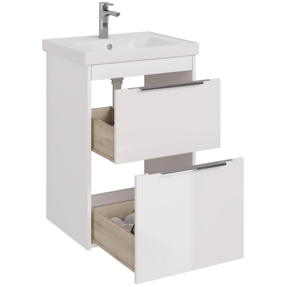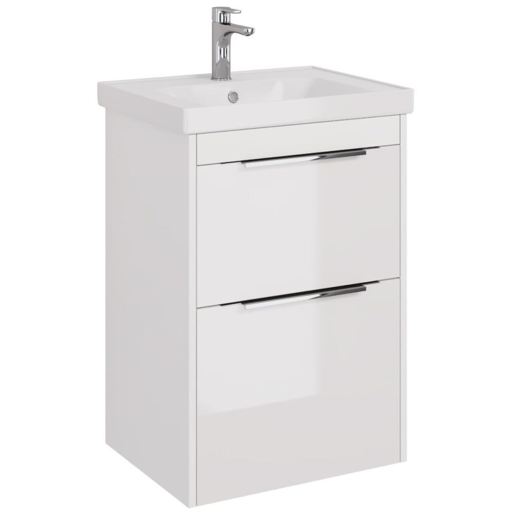 Тумба под раковину подвесная/напольная Dreja Prime 60 см, белый. Фурнитура: Hettich. Компоновка: 2 ящика. Дополнительные функции: встроенный органайзер в верхнем ящике. Монтаж: подвесной/напольный. Возможен напольный монтаж - необходимо отдельно приобрести ножки Dreja арт.: 99.9811 Раковина арт.: 641587 в комплекте.