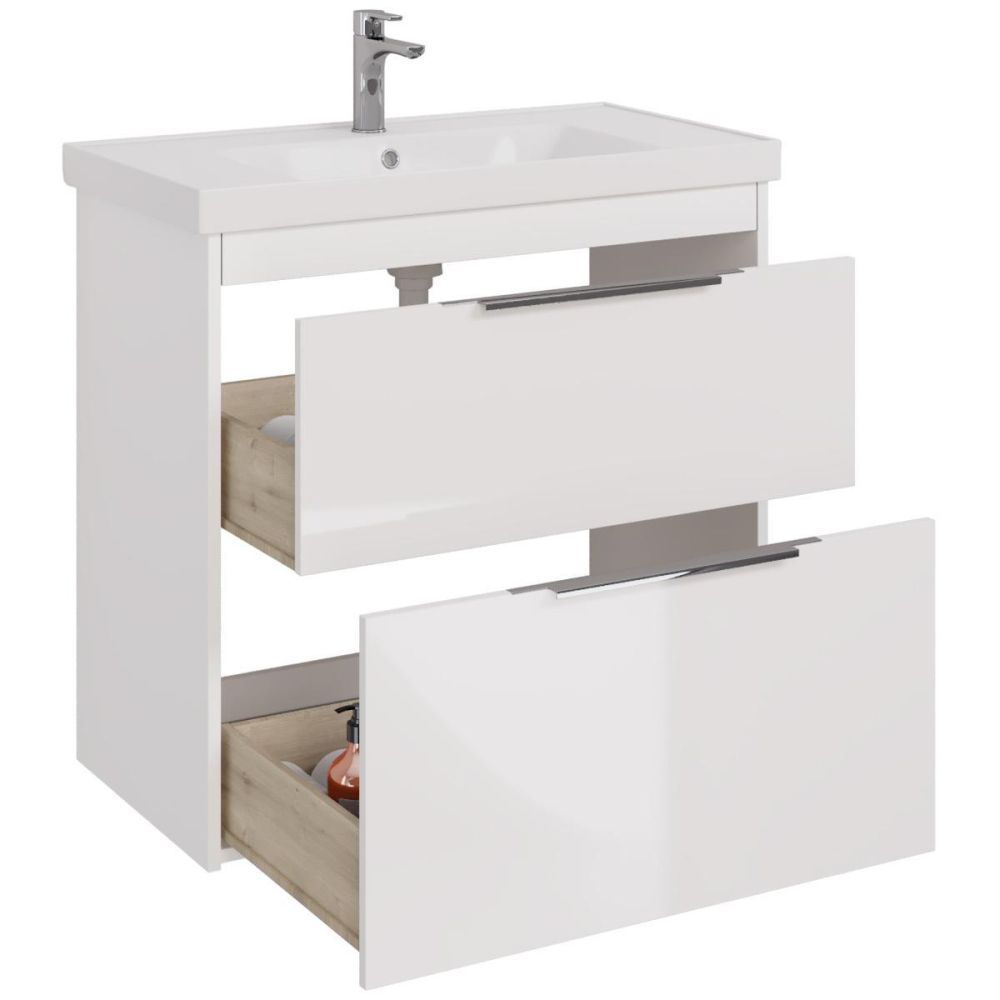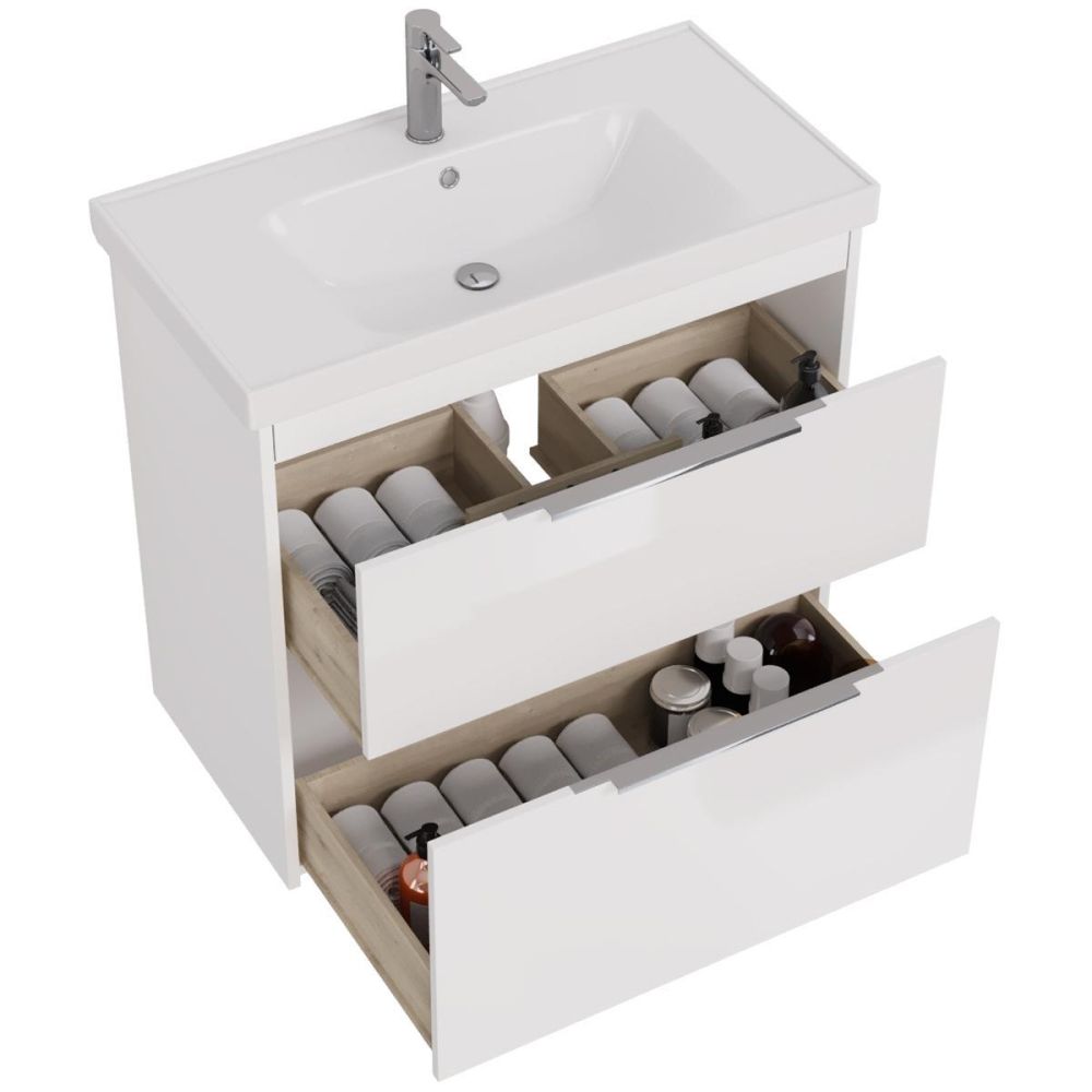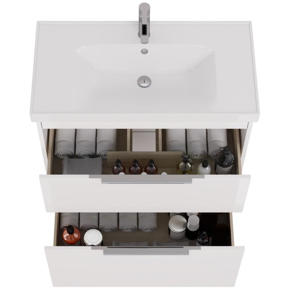 Тумба под раковину подвесная/напольная Dreja Prime 90 см, белый. Фурнитура: Hettich. Компоновка: 2 ящика. Дополнительные функции: встроенный органайзер в верхнем ящике. Монтаж: подвесной/напольный. Возможен напольный монтаж - необходимо отдельно приобрести ножки Dreja арт.: 99.9811 Раковина арт.: 641617 в комплекте.
